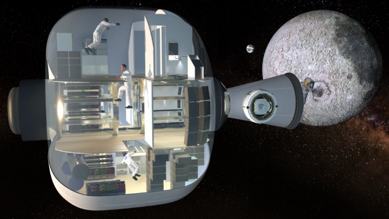 Модули могут компактно складываться и разворачиваться в космосе в объект с несколькими помещениями. Первый надувной космический модуль BEAM уже прошел испытания, его состыковали с МКС. Полностью заполненный газом модуль на орбите разворачивается в длину более 8 метров, объемом на 300 кубометров из 3 этажей.
