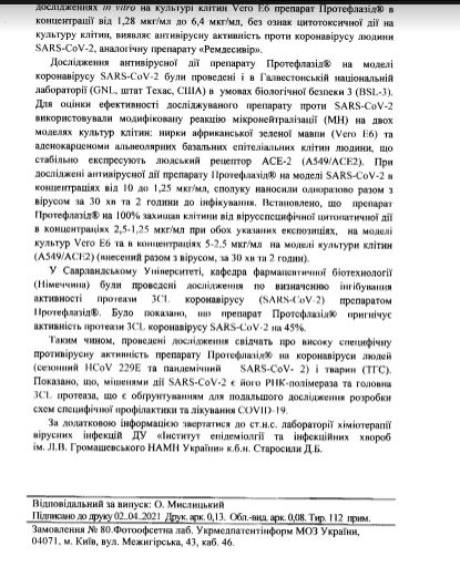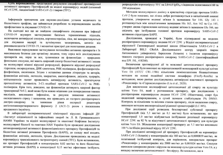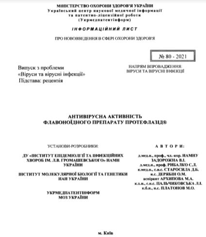Официальное Информационное письмо ведущих вирусологов Украины о результатах исследований действующего вещества протефлазид направлено всем областным департаментам здравоохранения и медицинским научно-исследовательским учреждениям.