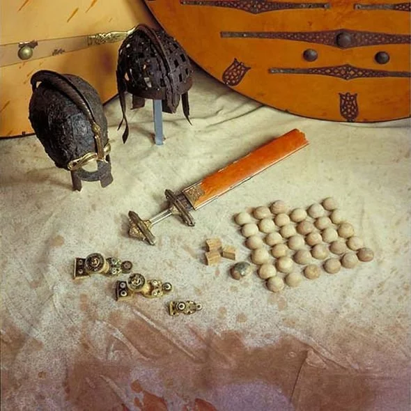 Две лодки имели длину около 10 метров и символически переносили мертвых в загробный мир. Сами умершие, вероятно, были высокопоставленными воинами с богатыми доспехами, изысканными шлемами, мечами и щитами. Их лодки имели некоторые запасы и инструменты, а животные и лошади были расположены у лодок.