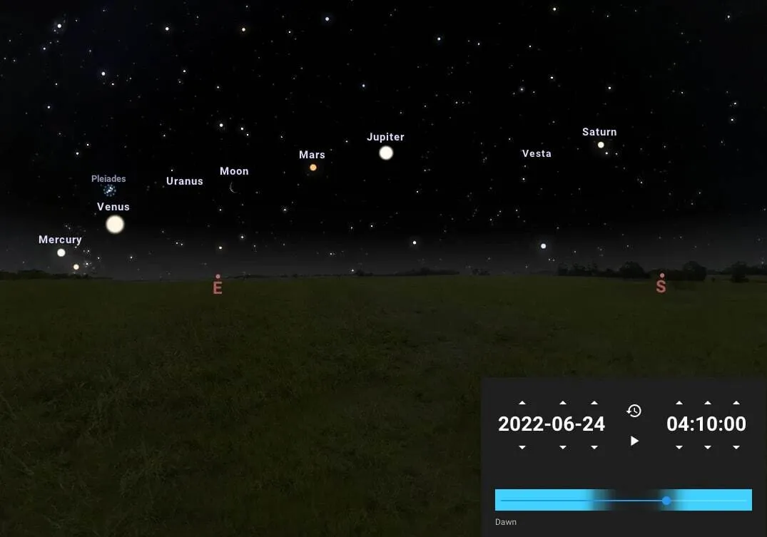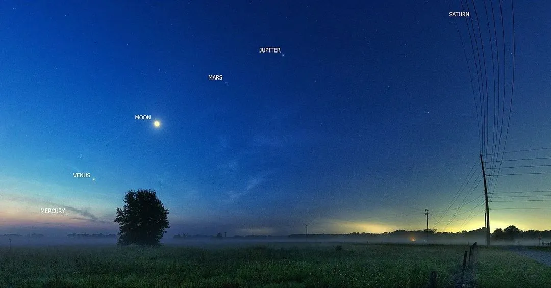 Национальное агентство NASA обнародовало фотографии парада планет, который произошел в ночь с 23 на 24 июня.