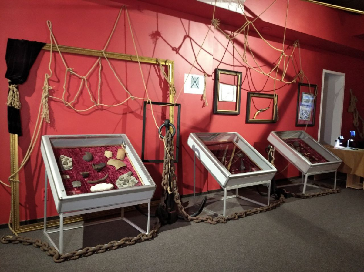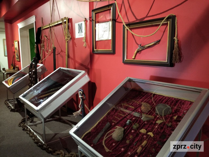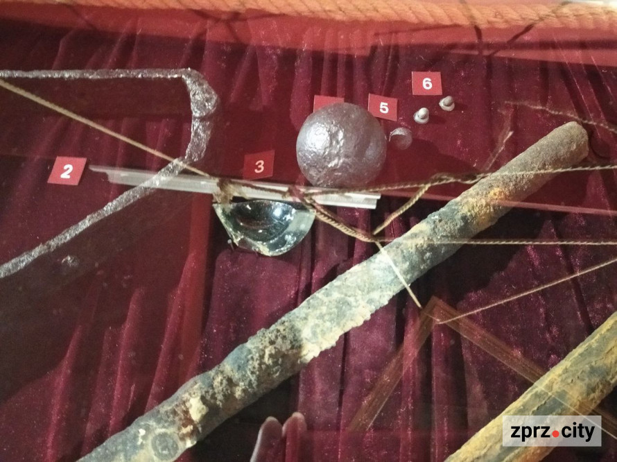 Также множество предметов эпохи казачества. В частности, довольно редкие - стеклянные ядра-бомбы, пехотные фузеи и кирки, которые использовались для строительства оборонительных сооружений.
