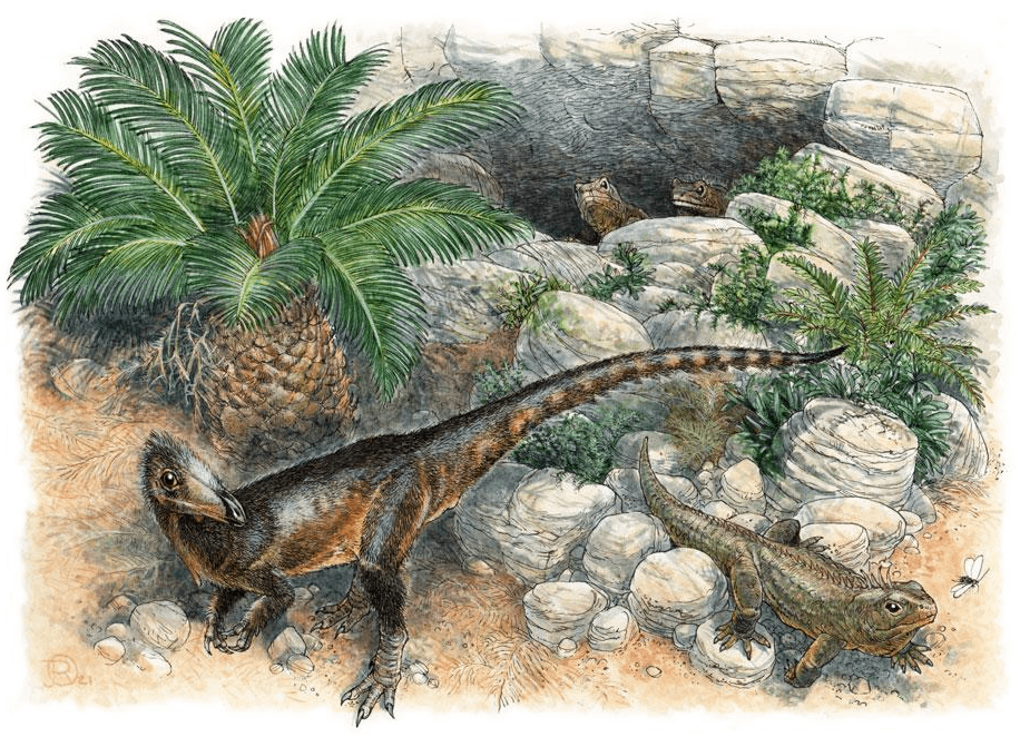 В такой местности динозавры отличались карликовостью из-за недостатка ресурсов и низкой конкуренции. Возраст отложений, в которых находились останки древнейшего динозавра - от 214,7 до 201,3 миллиона лет. У ящера бедренная кость была всего примерно 10 см длиной.