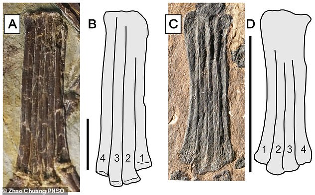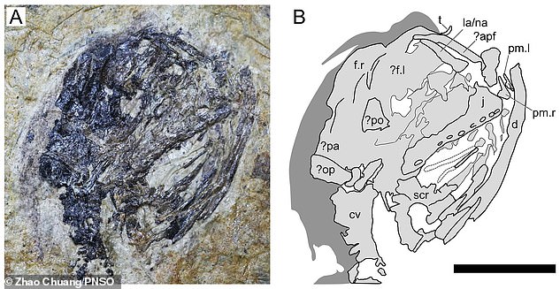 Палеонтологи в Китае обнаружили окаменевший скелет птерозавра Sinomacrops bondei и воссоздали его облик.
