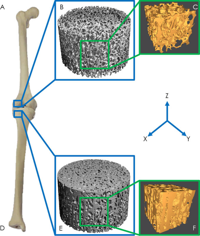 Для такого открытия исследователи изучали образцы верхнего эпифиза большеберцовой кости и нижнего эпифиза бедренной кости с помощью компьютерной микротомографии.
