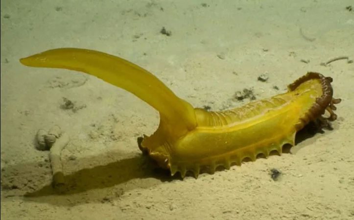 В частности был обнаружен эластичный трепанг в форме банана, известный как мармеладная белка (Psychropotes longicauda) длиной около 60 см.