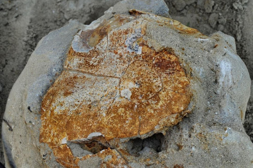 Российские ученые в одном из песчаных карьеров села Бешпагир (Ставропольский край, РФ) обнаружили большой брюшной щит ископаемой древней черепахи, которая жила 8 млн лет назад.