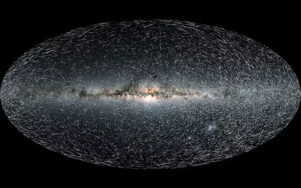 Все звезды, которые находятся в радиусе 325 световых лет от Солнца, были нанесены на карту космической обсерваторией ESA Gaia. Каждый луч света на ней представляет настоящее небесное тело, движущееся через Млечный Путь с шагом в 80 тысяч лет.