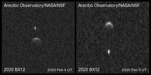 С помощью радарной станции Аресибо ученые провели наблюдения и открыли, что 2020 BX12 представляет собой двойную систему: меньший по размерам камень (диаметром 70 метров) вращается вокруг более крупного объекта, размер которого не менее 165 метров. Во время наблюдений расстояние между ними составляло примерно 360 метров.