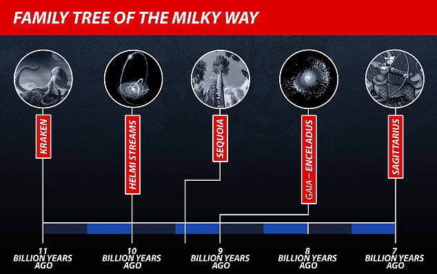 По информации ученых, на протяжении своей истории Млечный Путь каннибализировал около пяти галактик с более 100 миллионами звезд и около 15 с по меньшей мере 10 миллионами звезд. Самые масштабные галактики-предки столкнулись с Млечным Путем между 6 и 11 миллиардами лет назад, утверждают исследователи.