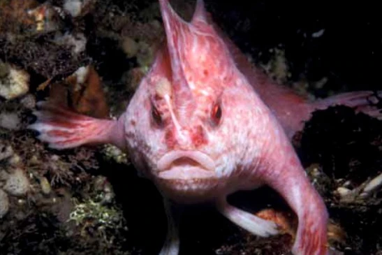Видео уникальной розовой рыбы с "руками" и "ногами", напоминающими куриные лапы, опубликовано на Youtube-канале ABC News (Australia).