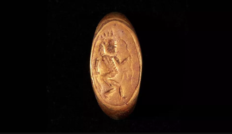 Среди украшений, которые смогли выявить археологи, были три золотых кольца. На одном из них нанесено изображение древнего египетского бога Беса, известного как "бог веселья".