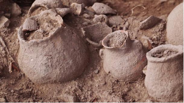 В пределах поселения также раскопали большой зал с почти 40 неповрежденными ритуальными сосудами, которые сохранились именно в тех местах, где они, вероятно, были оставлены тысячи лет назад. Эти небольшие и хорошо сохранившиеся сосуды явно не были предназначены для повседневных целей и, вероятно, выполняли определенные символические или церемониальные роли.