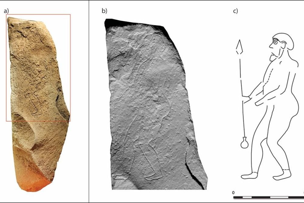 Артефакт лежал на глубине около одного метра. Оказалось, что это всего лишь третий подобный камень эпохи пиктов, найденный в этом регионе. Его высота составляет 1,9 метра, а ширина - 70 сантиметров. На нем изображен воин со "сложной прической" и "ярко выраженным задом".