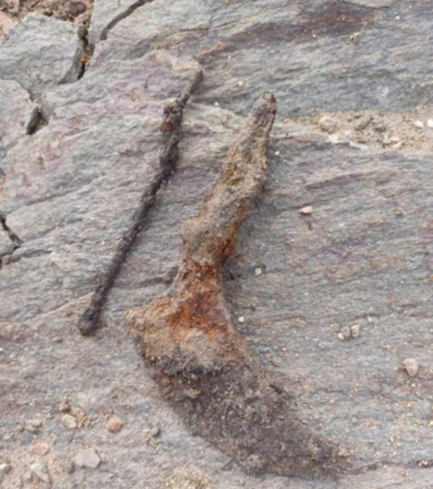 В Швеции археологи при раскопках могильника железного века обнаружили могилу женщины с маленькой иглой и изогнутым ножом, воткнутыми вертикально в землю.