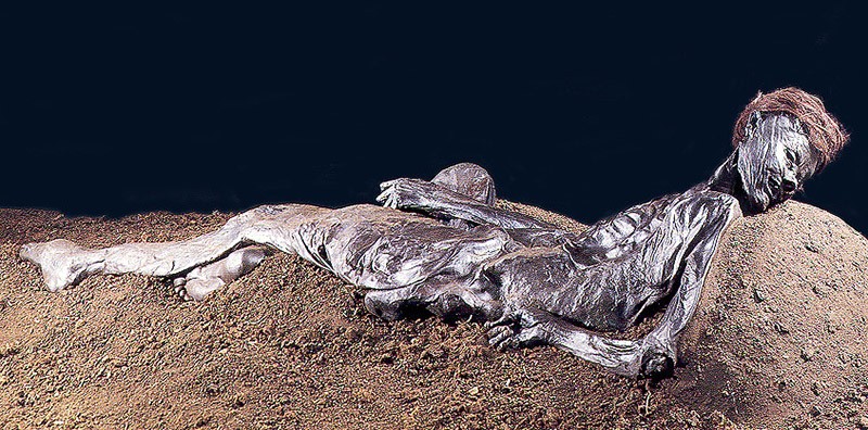 Мумифицированные тела, найденные в болотах, не такая уж редкость для археологии, но это тело, названное Человеком из Гроболла, уникально. Он не только идеально сохранился с нетронутыми волосами и ногтями, ученые также смогли установить причину его смерти по находкам, собранным на теле и вокруг него. Судя по большой ране на шее от уха до уха, похоже, его принесли в жертву, чтобы попросить богов о хорошем урожае.
