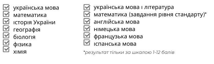 - Украинский язык (все задачи сертификационной работы) или Украинский язык и литература (субтест "Аттестационные задания")