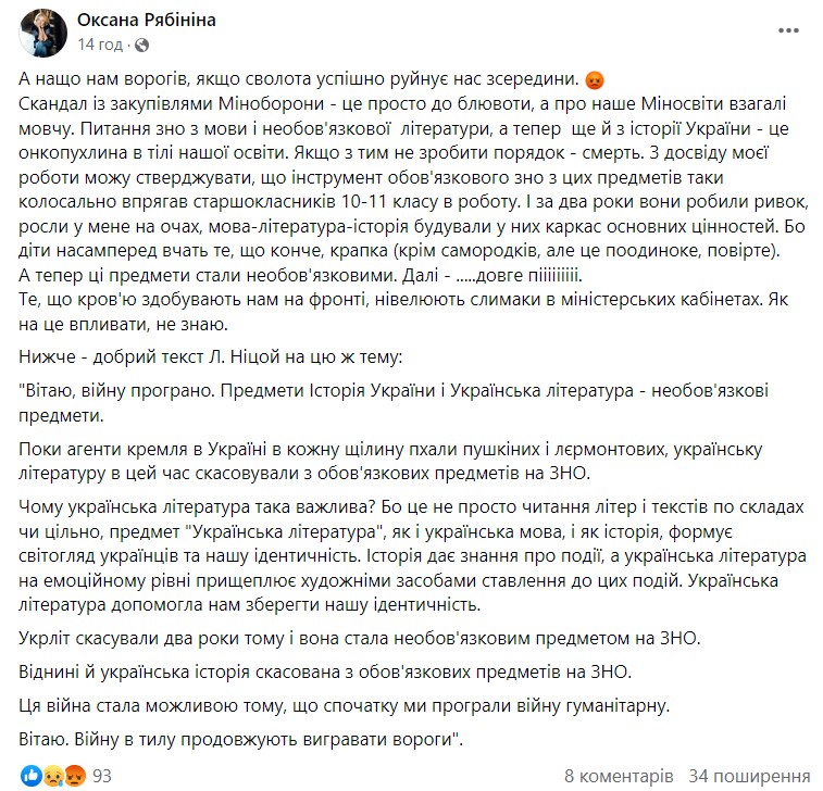 Инициатива Минобразования относительно отмены ВНО вызвала негодование в соцсетях. Пользователи также возмутились, что история Украины больше не является обязательным предметом.