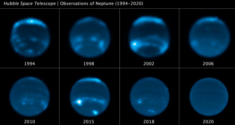 Изображения сравнили с солнечными циклами, и поняли, что они увеличивались и спадали синхронно с облачным покровом Нептуна.
