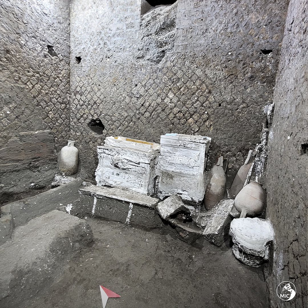 Комнату удалось обнаружить на вилле Чивита Джулиана, примерно в 600 метрах к северу от стен Помпеев. В комнате находились кровати. На одной из них был матрас, два небольших шкафа и урны и керамических контейнеров, в которых находились останки мышей и крысы.