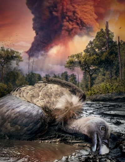 Великолепная сохранность структур перьев указывает на то, что труп грифа был похоронен в низкотемпературном пирокластичном отложении, которое часто связывают с горячим, быстрым потоком газа и мусором, обычно обжигающим мягкие ткани. Однако условия, приведшие к такому уровню сохранения, необычны - экстремальные условия вулканических извержений могут удивительно сохранить самые деликатные ткани при правильных обстоятельствах.