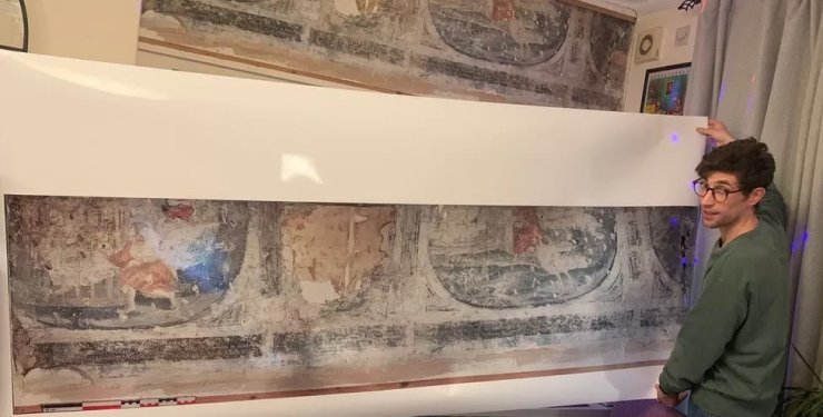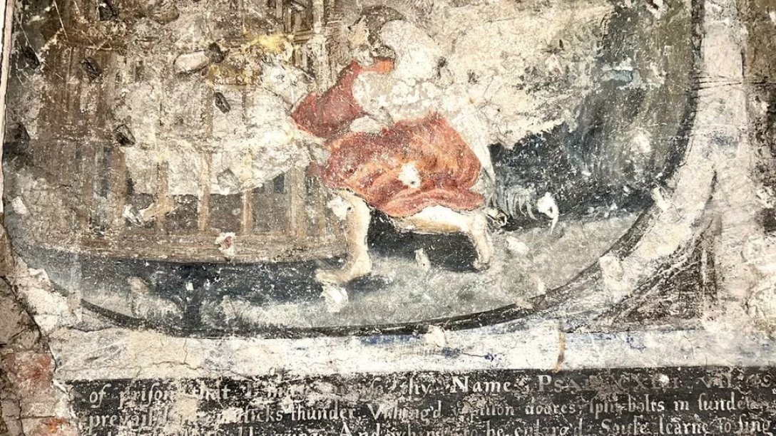 Британец обнаружил 400-летние фрески во время ремонта своей кухни. Увидев древние рисунки, он обратился в местное историческое сообщество, где его открытие "окрестили" выдающимся.