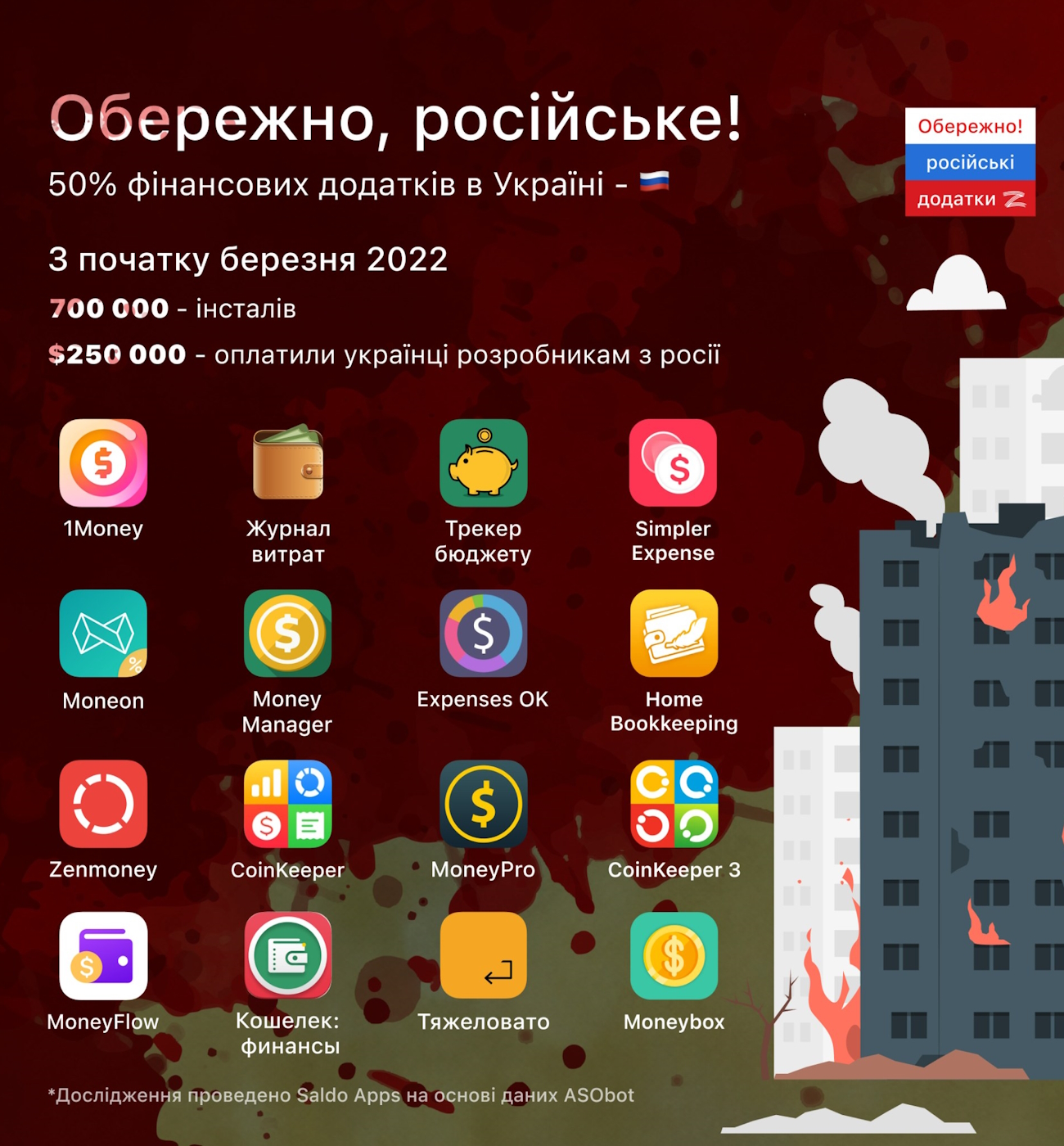 Он отметил, что команды Saldo Apps и ASObot насчитали 16 популярных в Украине учетных приложений, разработанных в РФ. С 1 марта 2022-го по 31 июля 2023 года украинцы загрузили эти приложения 700 тыс. раз и оплатили четверть миллиона долларов за пользование ими.