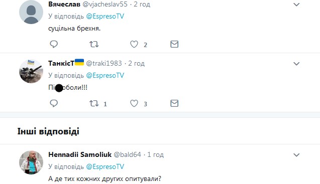 Пользователи Twitter в комментариях к новости разделились во мнениях – некоторые заявили, что опрос фейковый, другие поставили под сомнение репрезентативность выборки опрошенных, а еще часть провели параллель с результатами президентских выборов.