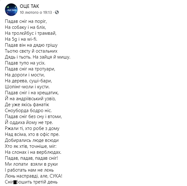 По этому поводу даже были написаны шутливые стихи, опубликованные на Facebook-странице "Оце так".