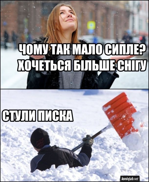 Стишок сопровождает илюстративная фотожаба, которая отображает отношение украинцам к затянувшимся снегопадам.