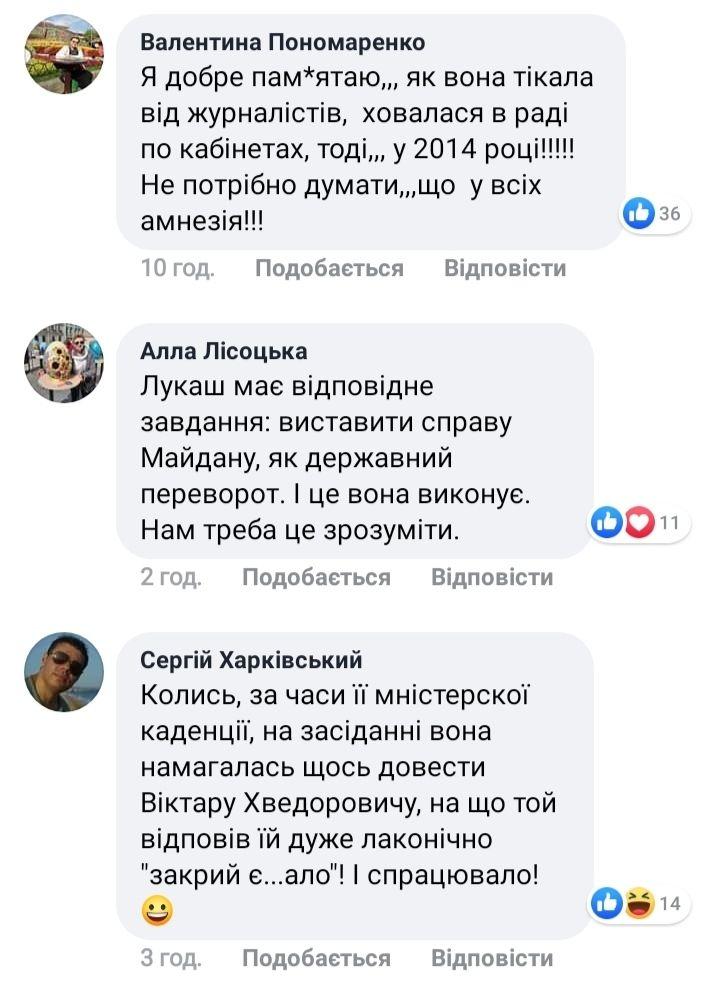 Все началось с того, что Лукаш влезла в выступление бывшего прокурора ГПУ Сергея Горбатюка, заверив, что "один майдановец убил другого". Более того, она озвучила имена предполагаемых участников конфликта.