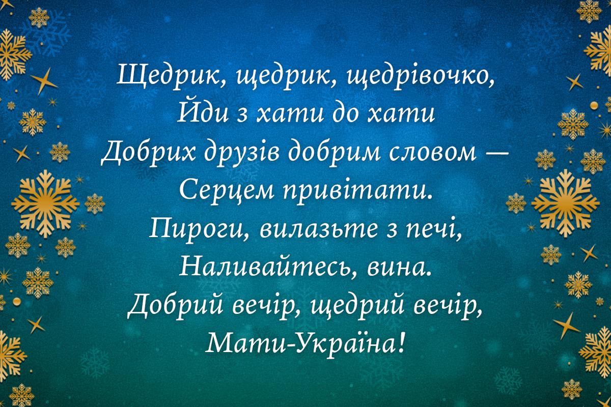 В ночь с 13 на 14 января по народному календарю, который опирающемуся на старый (юлианский) стиль, в Украине отмечают Старый Новый год. Это один из самых теплых и веселых зимних праздников, в котором христианские мотивы тесно переплелись с древними народными обычаями. Накануне, 13 января, отмечают Щедрый вечер, известный также как Маланка — время щедрования, веселья, маскарадных действ и искренних пожеланий изобилия.