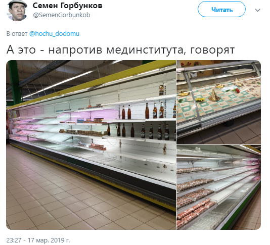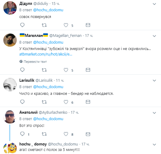 "Совок вернулся", "Чисто и красиво, а главное - бендер не наблюдается", "Вот это спрос!", "ага!! сметают с полок за 5 минут!", "Вот это Цирк", "Расцвет заката социализма в действии", "хоть бы бычками в томате или березовым соком заставили!", "освободили!", - пишут комментаторы.
