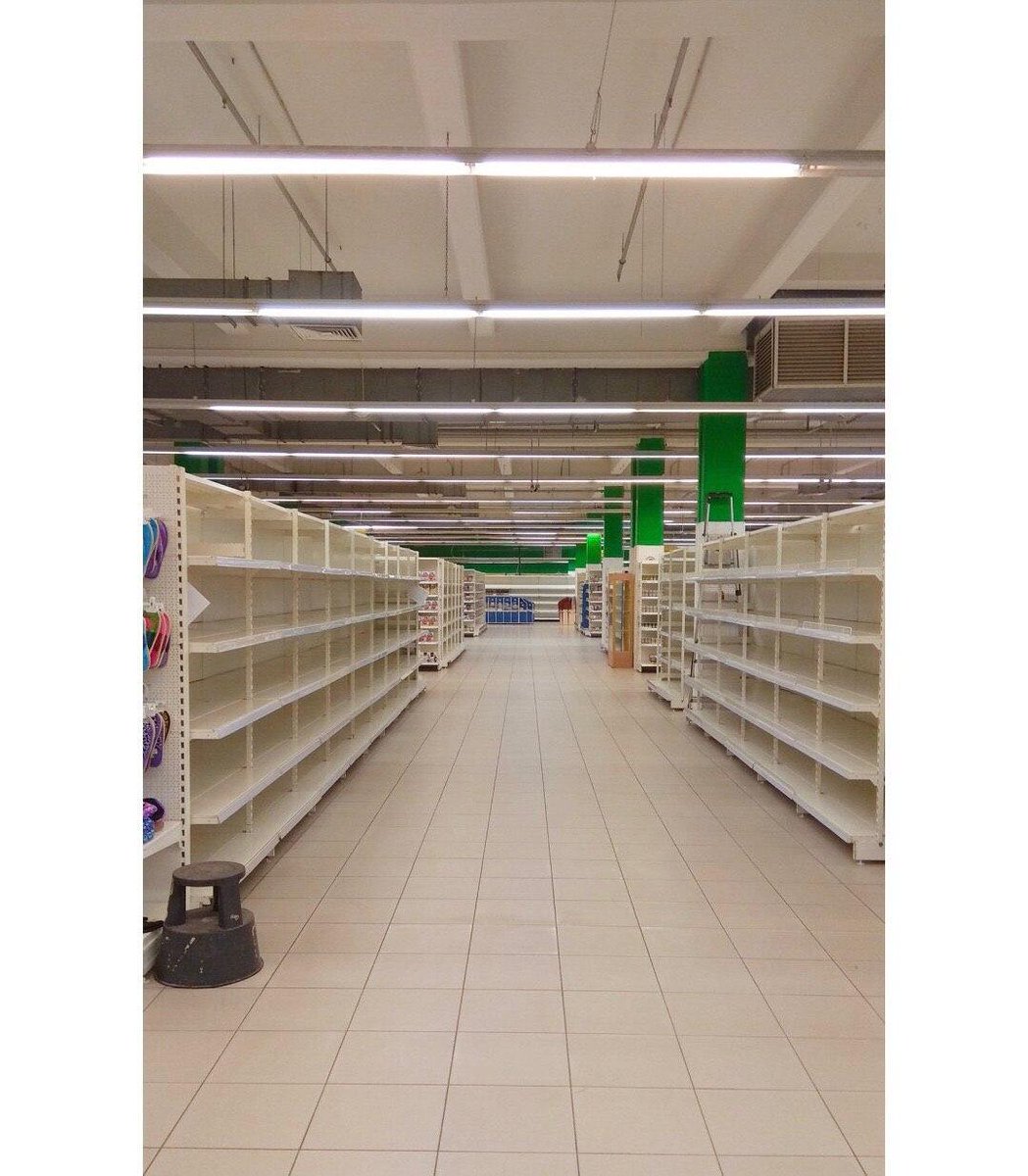В сети появились печальные фото из донецких супермаркетов, где нет ни продуктов ни людей.