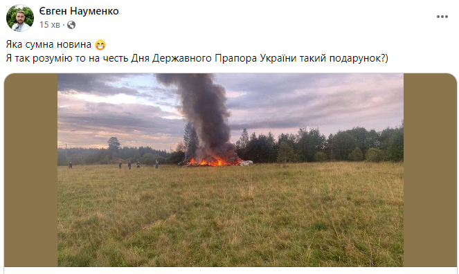Сегодня, 23 августа, в Тверской области России, вблизи села Куженкино разбился самолет, принадлежащий главарю ЧВК "Вагнер" Евгению Пригожину, что вызвало у украинцев непреодолимое желание шутить и создавать мемы.