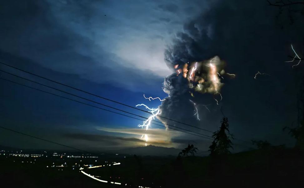 В Филипинах произошло извержение вулкана, которое сопровождалось десятками молний.