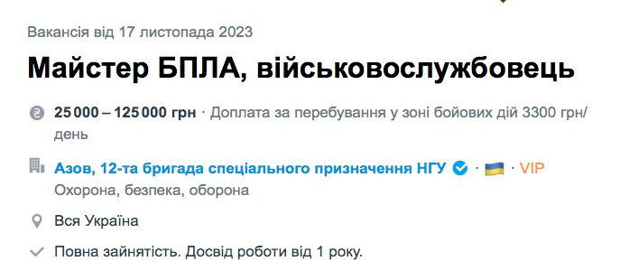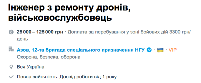 Также "Азов" ищет инженера по ремонту дронов.