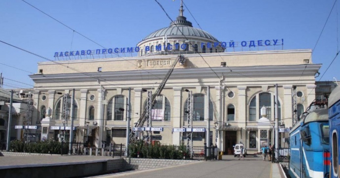 В Одессе решили прикрыть советские символы – барельеф ордена Ленина – на фасаде железнодорожного вокзала. Его завесили баннером.