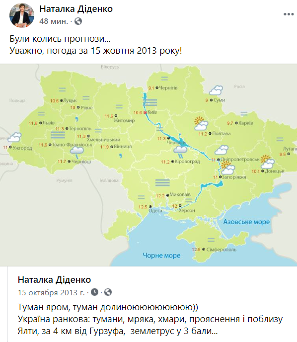 Наглядно температурную разницу на своей странице в Facebook показала синоптик Наталья Диденко, опубликовав прогноз погоды за 2013 год.