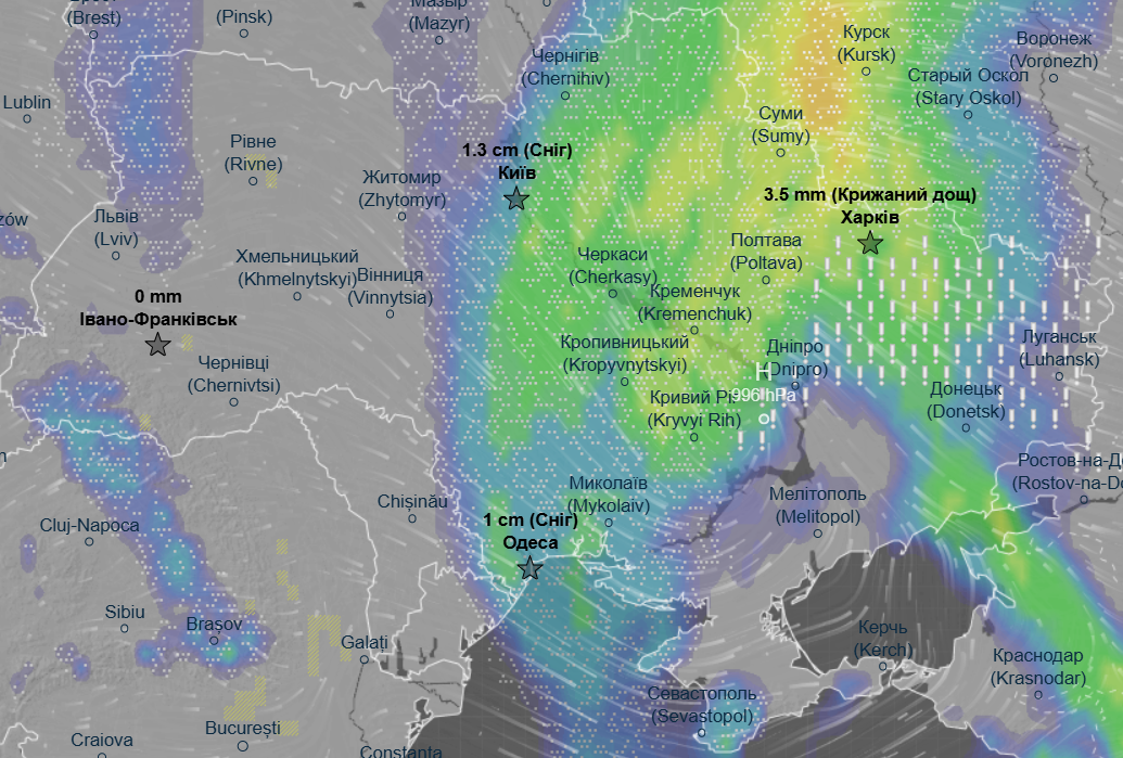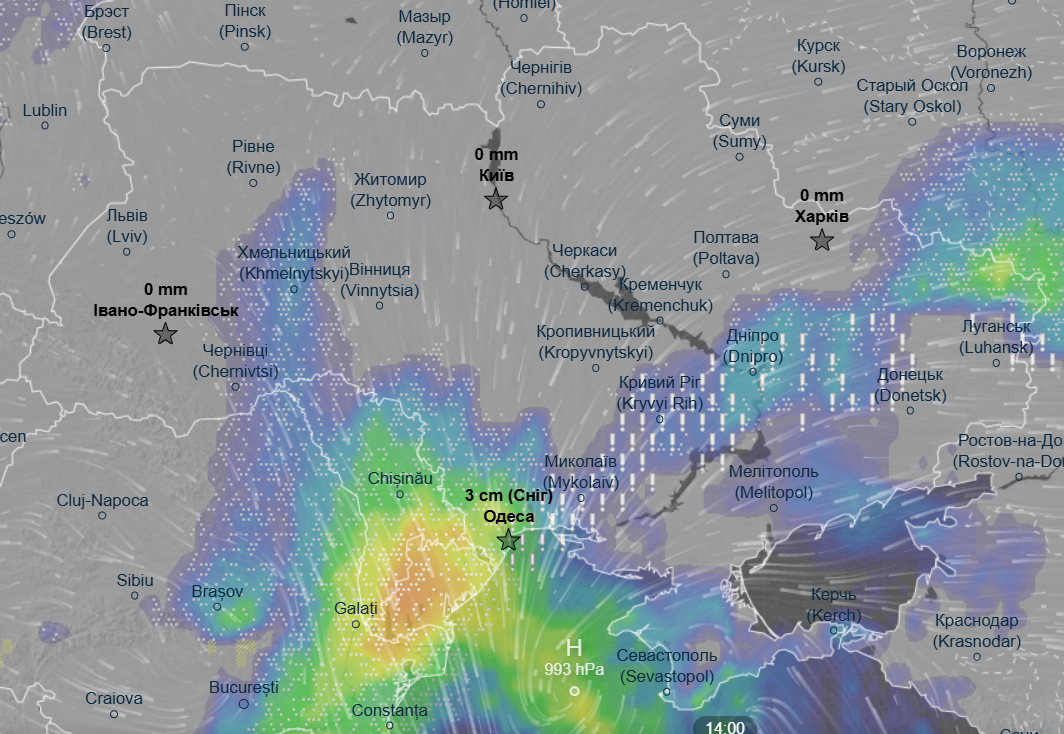 До конца суток больше всего снега выпадет на Одесщине, Днепропетровщине, Кировоградщине и в отдельных районах Полтавщины.