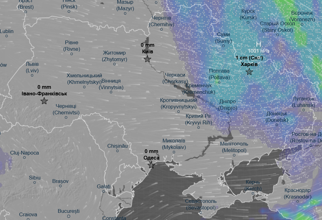 Об этом говорится в прогнозе метеорадара Ventusky.