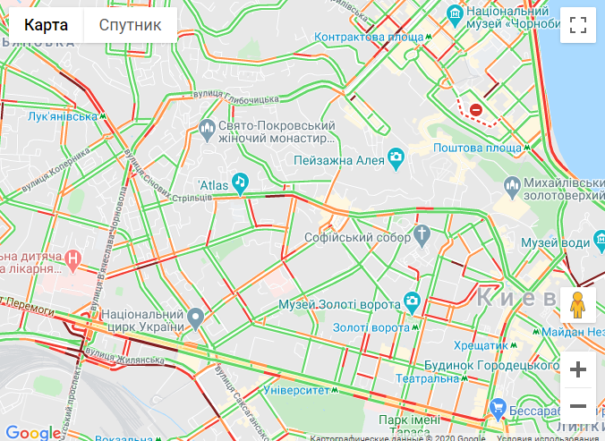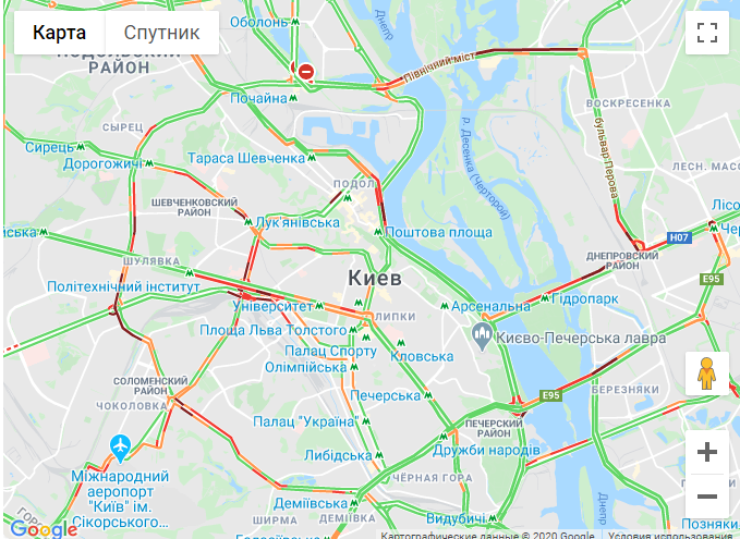 Также частично перекрыли движение на проспекте Леся Курбаса, на улице Покровской и на Подоле.