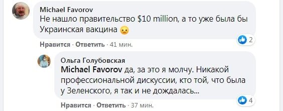 Он прокомментировал слова эксперта-эпидемиолога в федеральном Aгентство США CDC и директора частной американской фармацевтической компании DiaPrep Systems Михаила Фаворова. Он отложил разработку вакцины от COVID-19 из-за отказа финансирования Минздравом Украины.