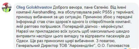 "Предварительный диагноз – микроинсульт. Мы прикладываем все усилия, чтобы максимально быстро исправить последствия этого случая и отправить пассажиров в Одессу", – написал он.