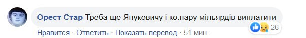 Решений судей разозлило украинцев. Пользователи сети предложили присудить пособнице боевиков 3600 лет заключения, а не компенсации. А некоторые заметили, что такими темпами Украину могут заставить выплатить деньги и президенту-беглецу Виктору Януковичу.