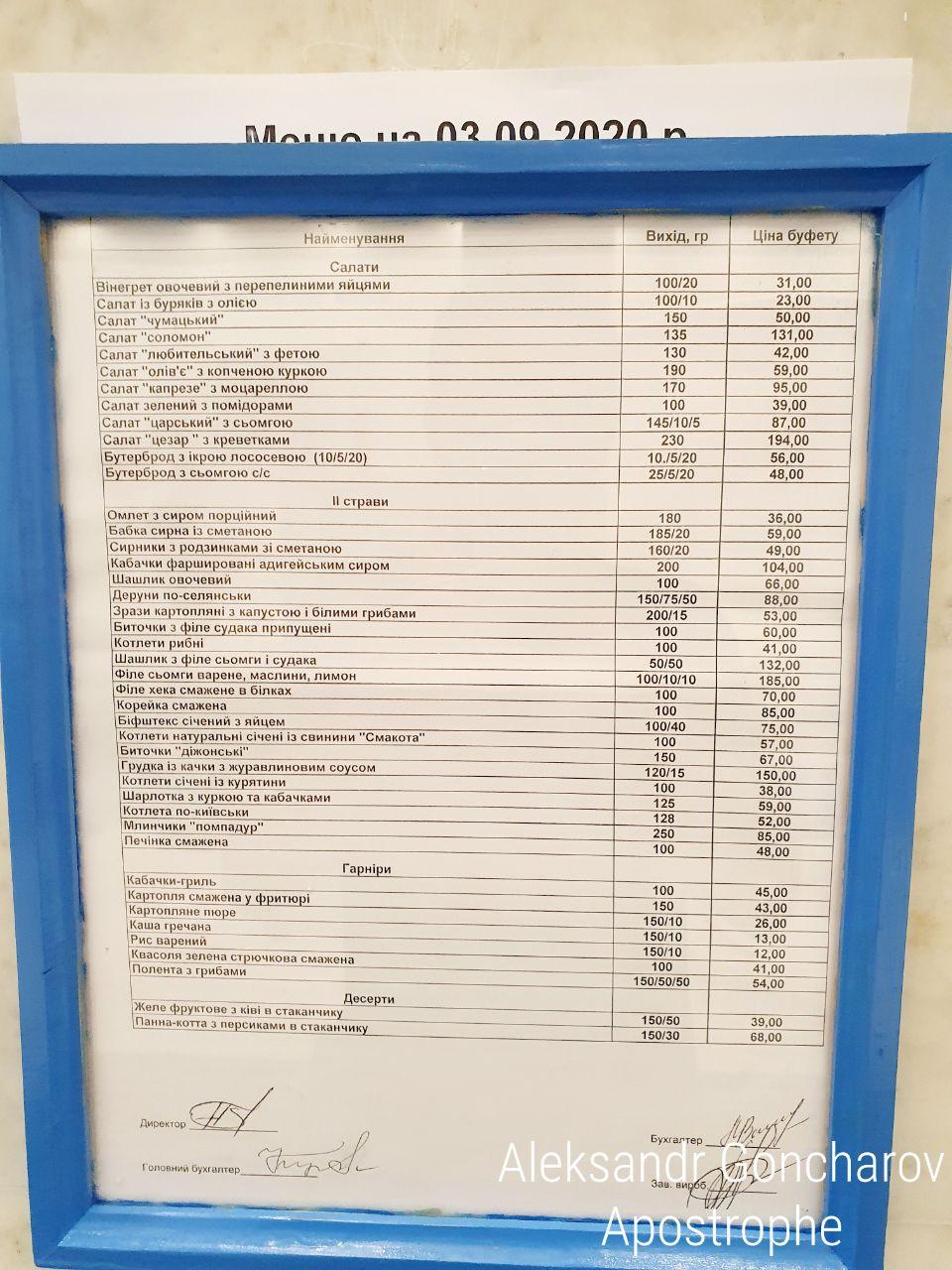 Фото меню сделал корреспондент "Апострофа" Александр Гончаров.