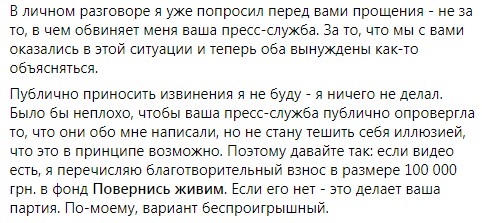 Сам же нардеп от "Слуги народа" написал на своей Facebook-странице, что сожалеет о случившемся. Но также он опроверг информацию, что поднял руку на Ионову.