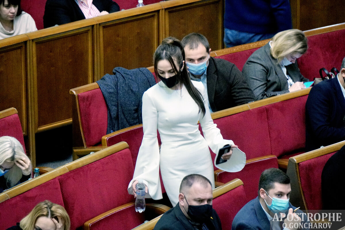 Народный депутат от партии "Слуга народа" Дарья Володина пришла в Верховную Раду в стильном белом наряде.