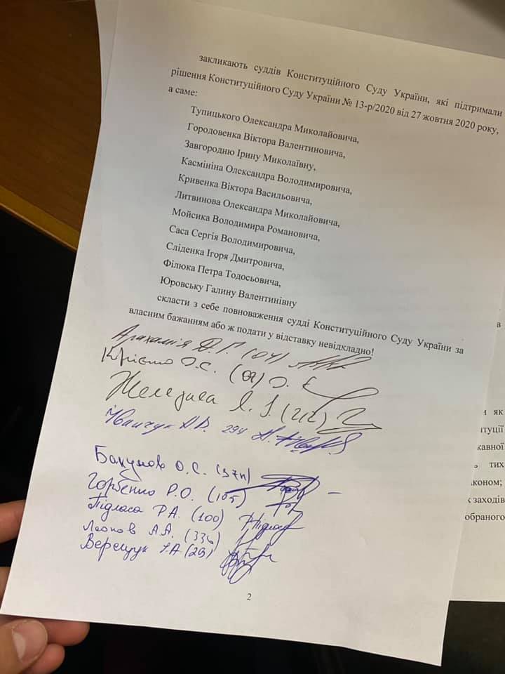 В документе предлагают 11 судьям Конституционного суда снять с себя полномочия или подать в отставку немедленно.