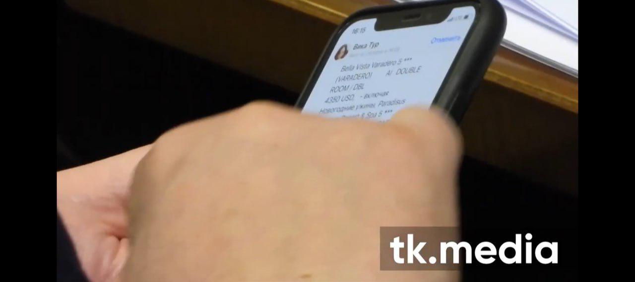 На видео видно, что нардеп Владислав Бородин, находясь в сессионном зале, выбирает варианты отеля для новогоднего отдыха на Кубе. Контакт, подписанный как "Вика Тур" предложил народному депутату вариант пятизвездочного отеля Iberostar Selection Bella Vista Varadero Hotel. Стоимость отдыха, предложенного Викторией, составляла 4350 долларов.