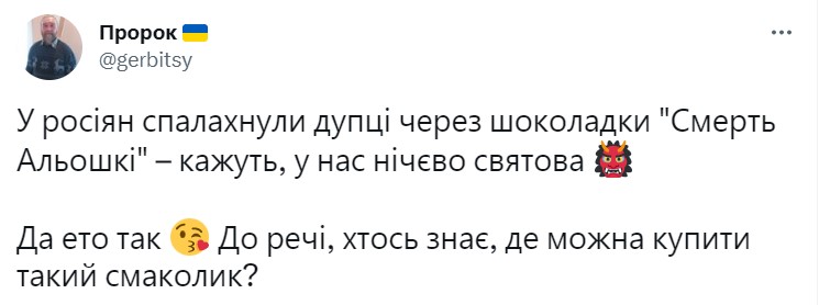 "У россиян подгорели с*аки из-за шоколадки "Смерть Алешки" – говорят, у нас ничего святого. Да это так. Кстати, кто-то знает, где можно купить такую вкусняшку?", "Теперь я знаю, что попрошу на свой день рождения", – пишут в сети.